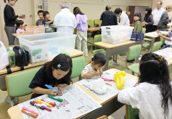 10月26日に中央公民館で実施された子どもフェスティバルで、町民会議は木を使ったキーホルダーづくりを行いました。例年行っていた木工チャレンジが会場の関係で実施できなかったため、木工チャレンジ用の丸い木辺に自由に絵を描いてもらい、穴を開け、紐を通してキーホルダーを製作しました。まさに木ホルダーです。大変好評で、191人の子供たちがチャレンジしました。
